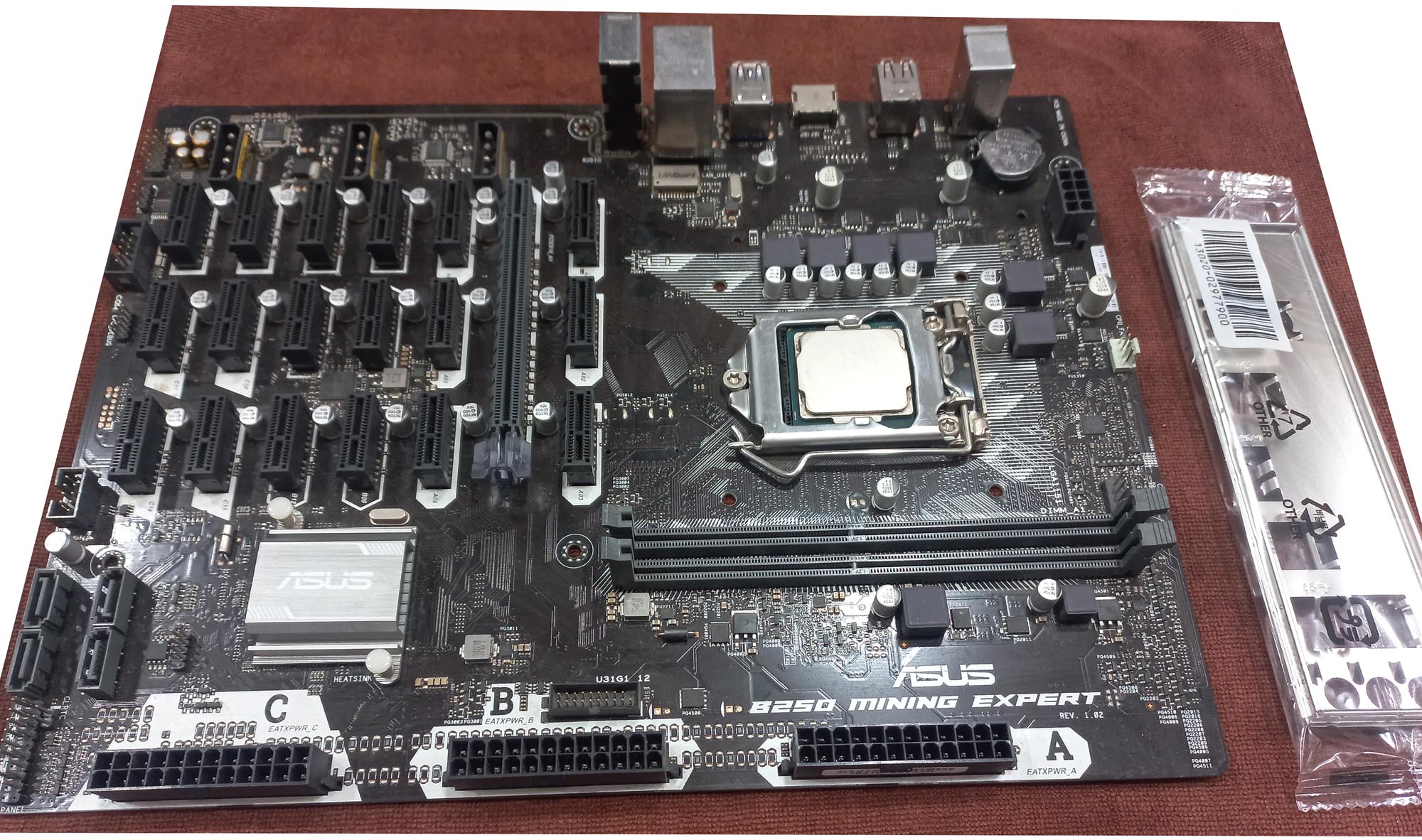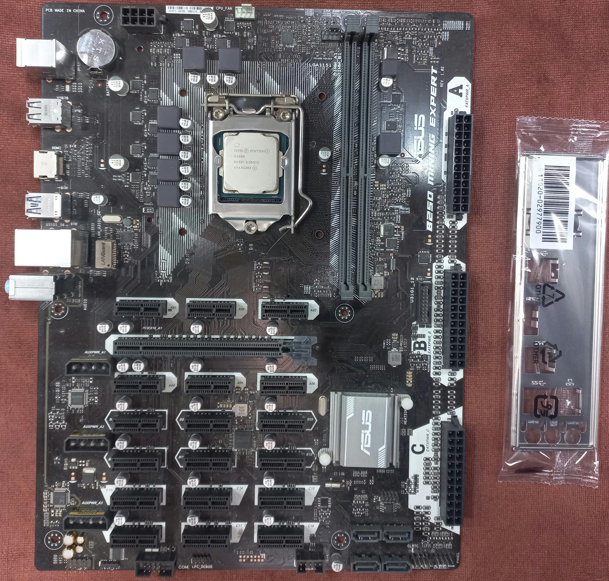 مادربردایسوس B250 Mining Export باپردازنده و پنل پشتی