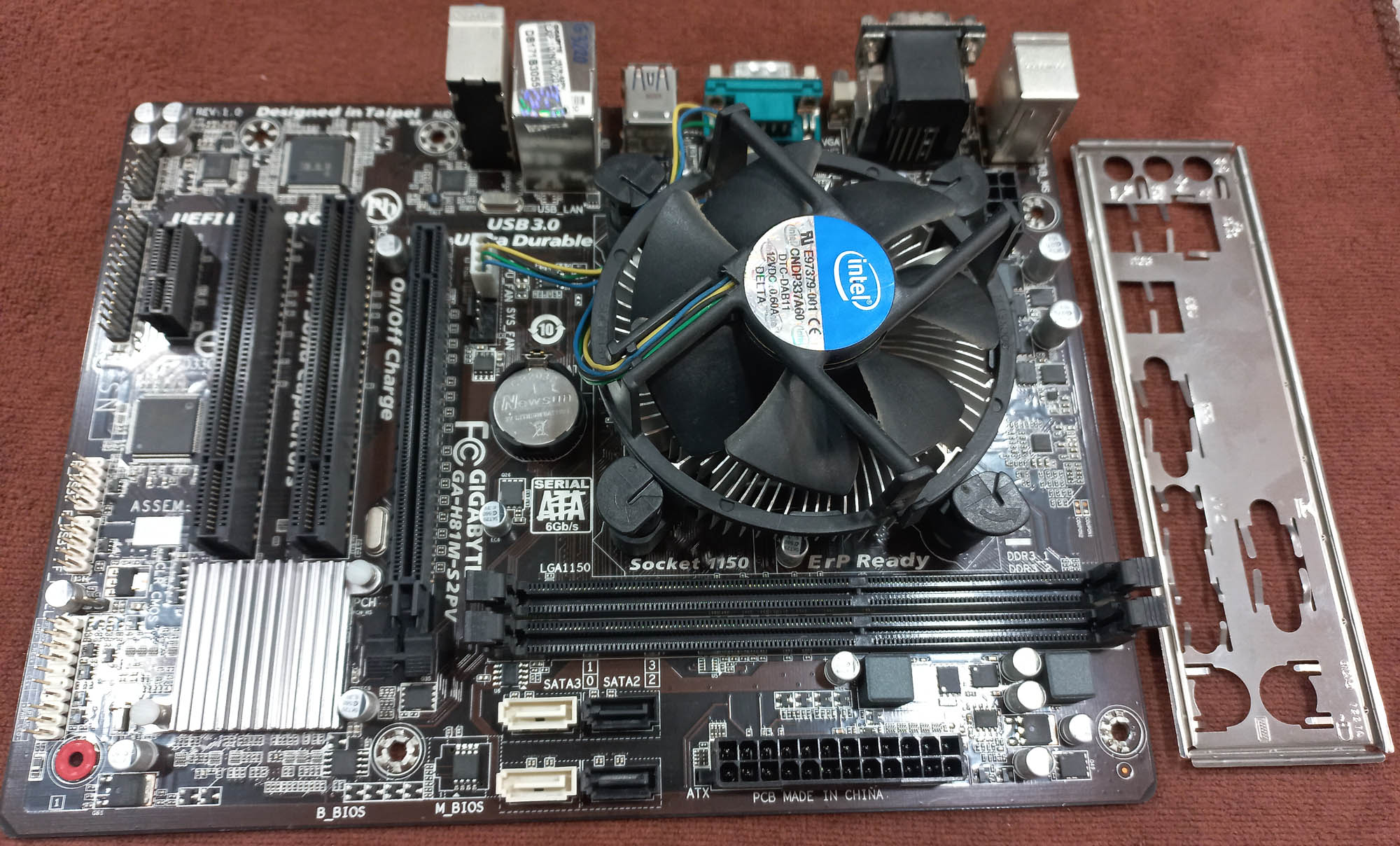 مادربرد گیگابایت GA-H81M-S2pv باپردازنده،فن اورجینال،پنل پشتی