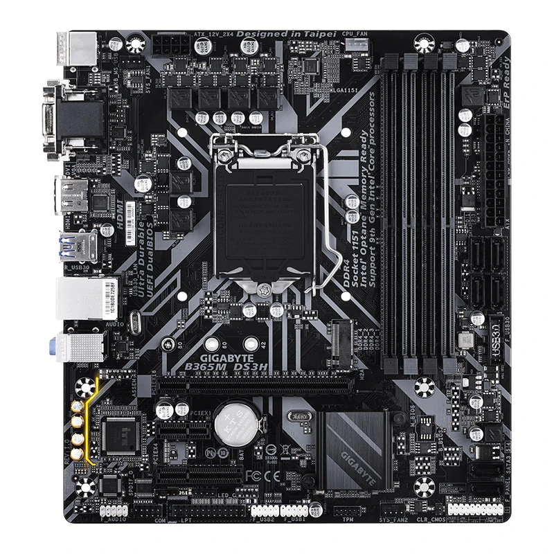 مادربرد Gigabyte B365M DS3H یکی از مدلهای محبوب و قدرتمند شرکت گیگابایت است که برای سیستمهای نسل هشتم و نهم پردازندههای Intel Core طراحی شده است. این مادربرد با بهرهگیری از چیپست Intel B365 و سوکت LGA 1151، عملکرد پایدار و قابلاعتمادی را در کنار امکانات مدرن ارائه میدهد.
