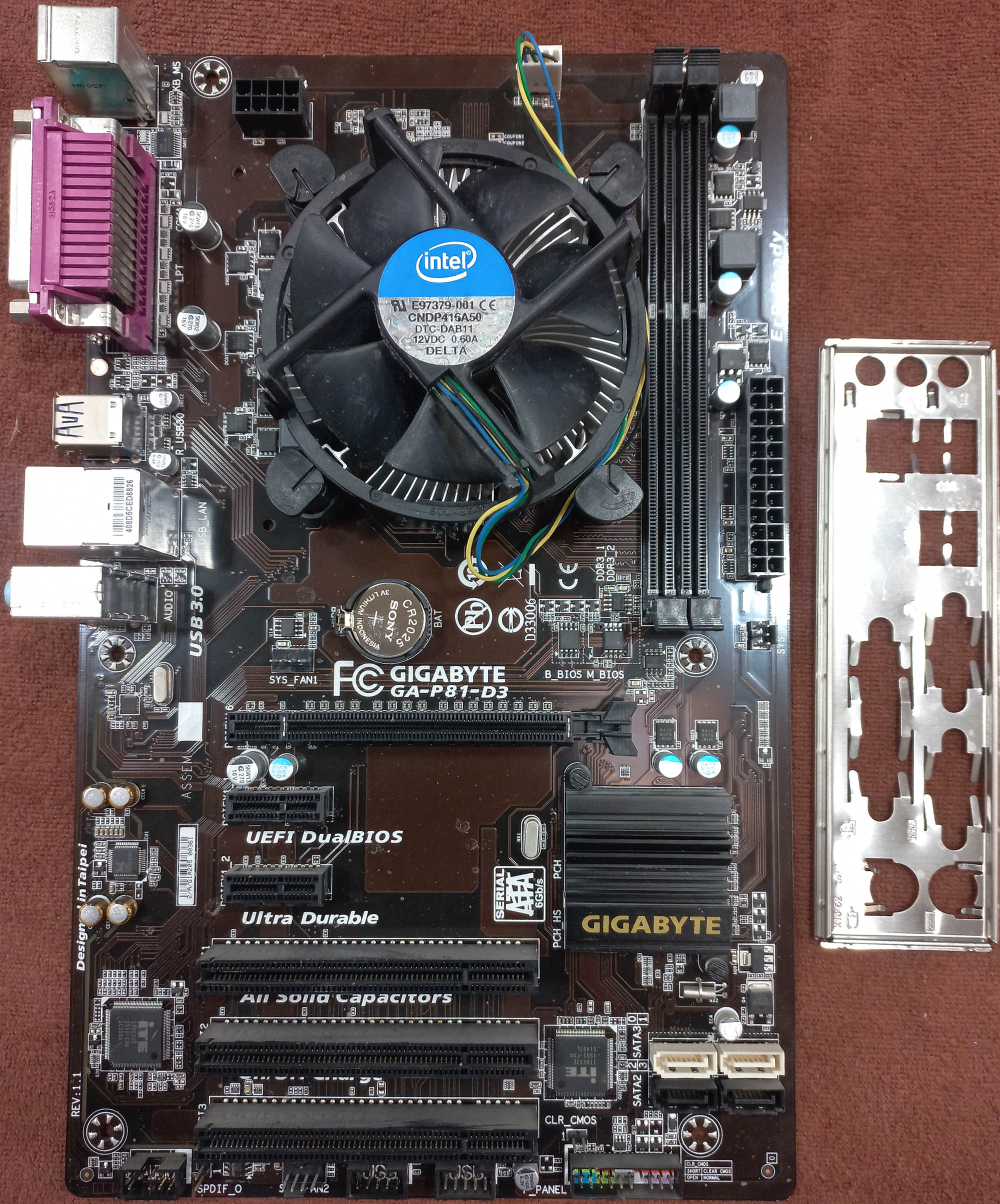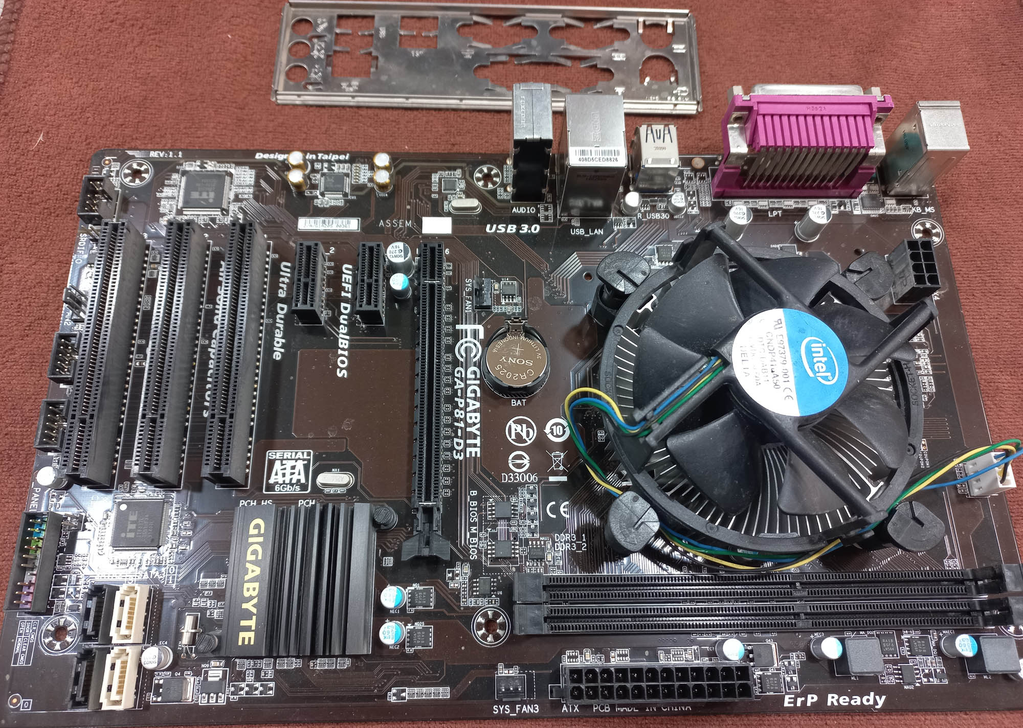 مادربرد گیگابایت GA-P81-D3 باپردازنده،فن اورجینال،پنل پشتی